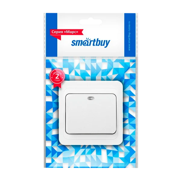 Выключатель Smartbuy "Марс" 1-клав.10A керамика с индикатором белый