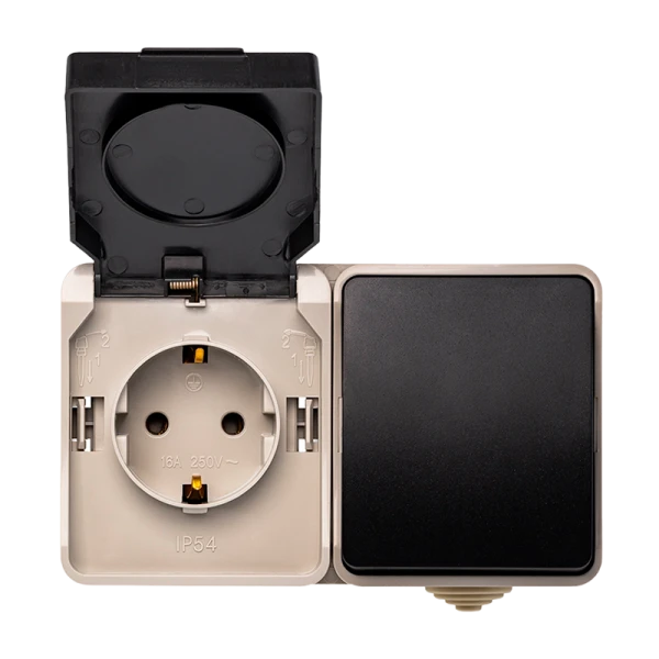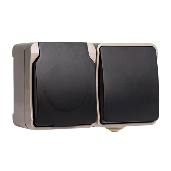 Блок розетка выключатель Smartbuy "Сатурн" IP54 бежевый