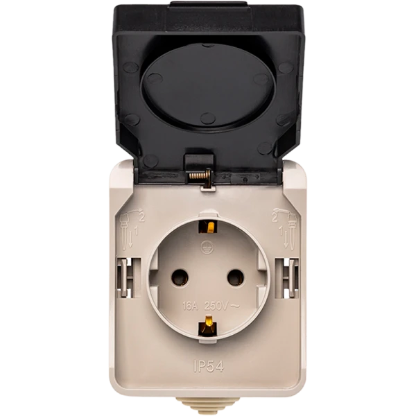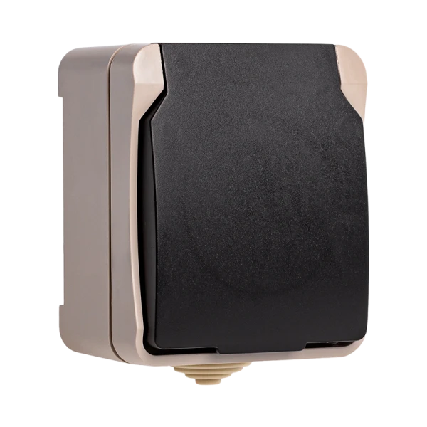Розетка Smartbuy "Сатурн" 1гн. 16A С/З пластик с крышкой бежевый