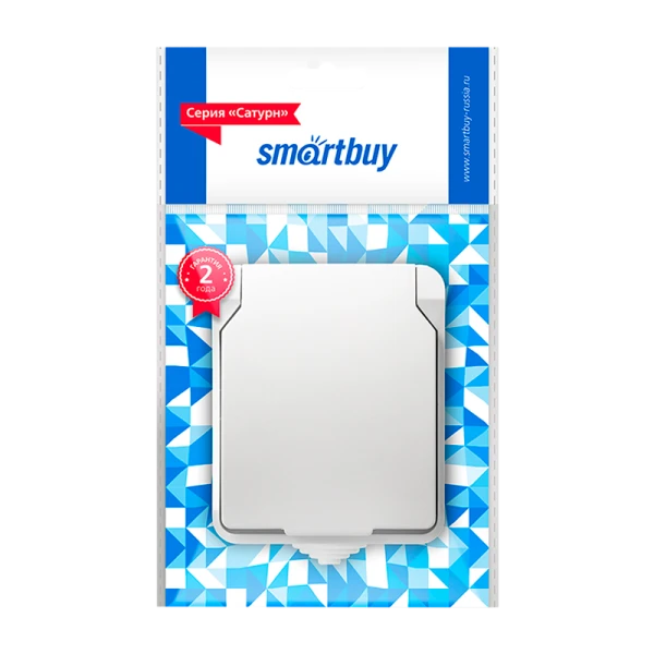 Розетка Smartbuy "Сатурн" 1гн. 16A С/З пластик с крышкой белый