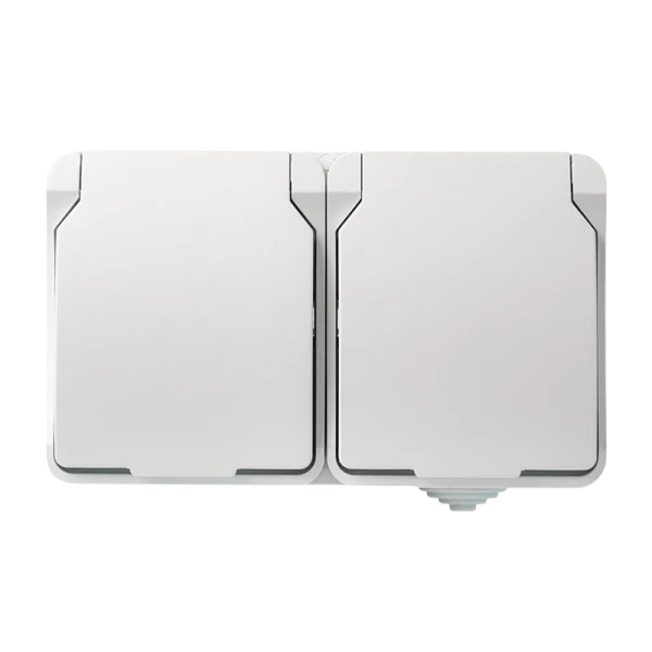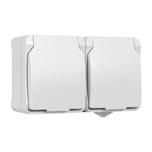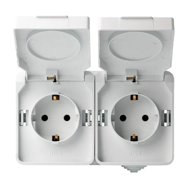Розетка Smartbuy "Сатурн" 2-местная с заземлением 16А с крышкой, степень защиты IP54, цвет белый, серия Сатурн от SMARTBUY. Подходит для использования на открытом воздухе.