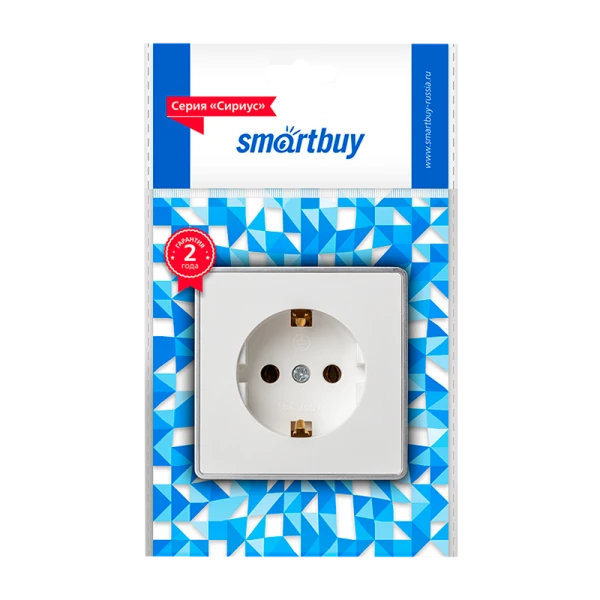 Розетка Smartbuy "Сириус" 1-местная 16А с заземлением, белая.