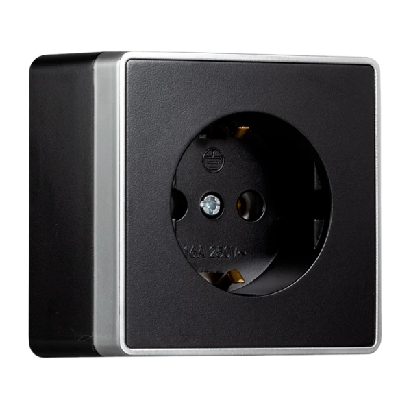 Розетка имеет накладной способ монтажа и способна выдерживать нагрузку до 16А. Корпус розетки выполнен в стильном черном цвете. Серия Сириус - это элегантное решение для вашего дома.