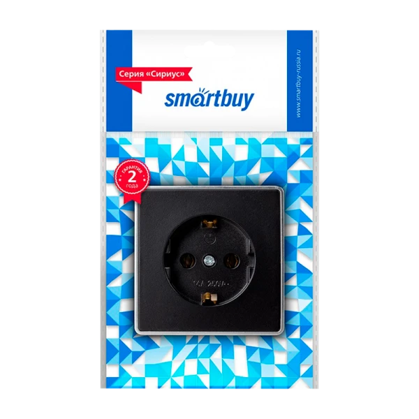 Розетка Smartbuy "Сириус" 1гн. 16A С/З пластик черный