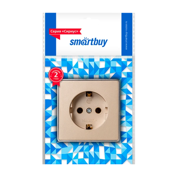 Розетка Smartbuy "Сириус" 1-местная 16А с заземлением, шампань.