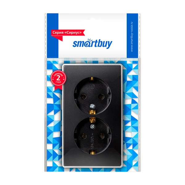 Розетка Smartbuy "Сириус" 2гн. 16A С/З пластик черный
