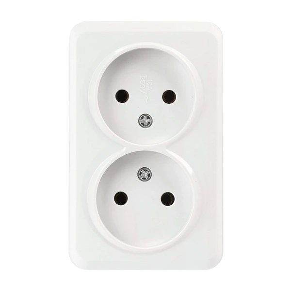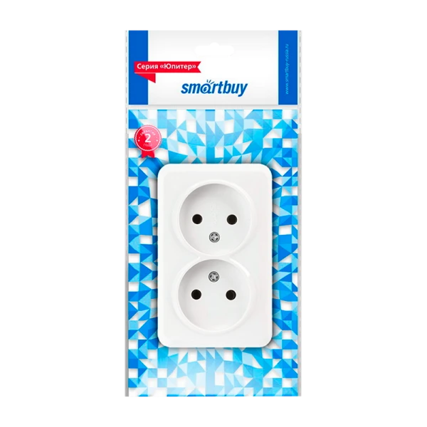 Розетка Smartbuy "Юпитер" 2-местная без заземления. Эта модель входит в серию Юпитер и выполнена в белом цвете. Корпус изготовлен из качественной керамики. Максимальная нагрузка по току составляет 10А. Монтаж данной розетки осуществляется наружным способом.