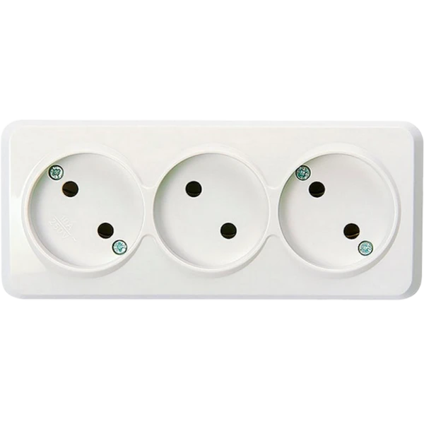 Розетка Smartbuy "Юпитер" 3-местная без заземления идеально подойдет для наружного монтажа. Корпус выполнен в белом цвете. Максимальная допустимая нагрузка по току составляет 10А.