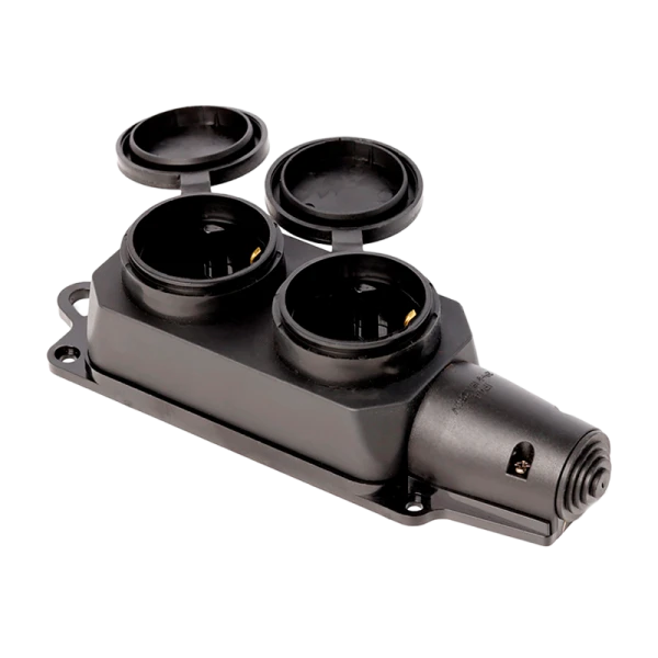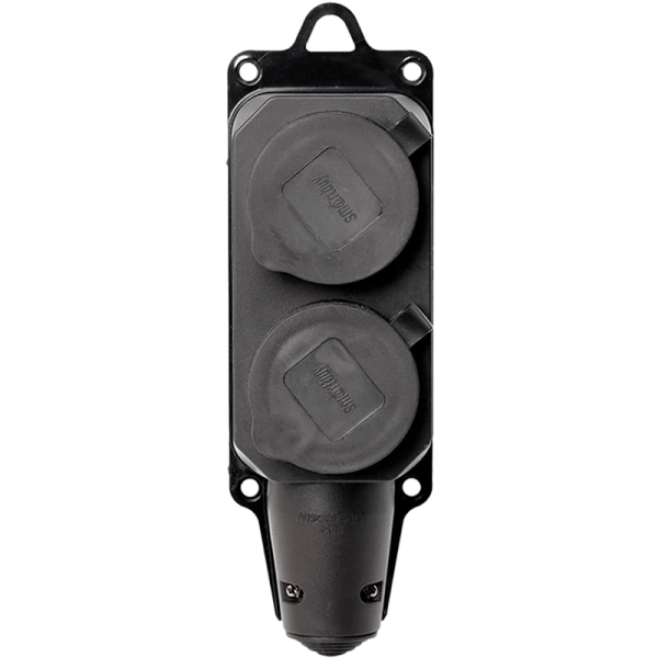 Розетка Smartbuy двухместная с защитными крышками из каучука обеспечивает безопасное подключение электроприборов даже в условиях повышенной влажности и пыли благодаря степени защиты IP44. Модель имеет номинальный ток 16А и максимальную мощность 3500 Вт. Корпус розетки Smartbuy SBE-16-2-00-R выполнен из прочного каучука и представлен в черном цвете.