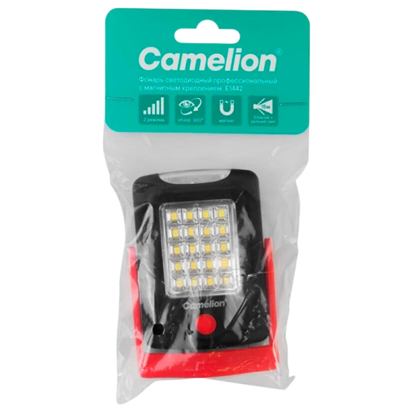 Фонарь Camelion E1442 от батареек для проведения осмотровой работы. 3 светодиода с фокусирующими линзами для осмотра полузакрытых труднодоступных полостей, 20 SMD - светодиодов для ближнего света. 2 режима работы. Поворотная подставка с встроенным магнитом для крепления к металлу. Складывающийся крючок для подвеса устройства. 3 x AAA батарейки (в комплект не входят).