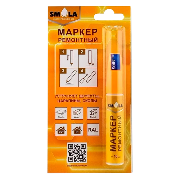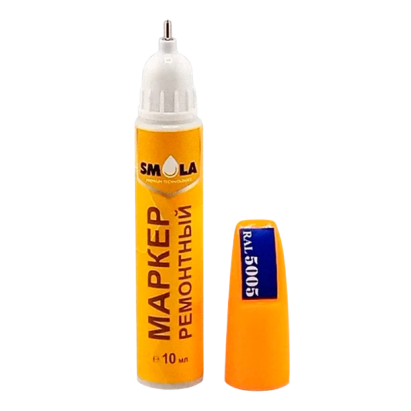 Маркер ремонтный SMOLA RAL 5005 предназначен для устранения, ремонта и ретуширования дефектов, царапин, сколов на различных поверхностях методом нанесения быстросохнущей цветной эмали, стойкой к воздействию влаги.