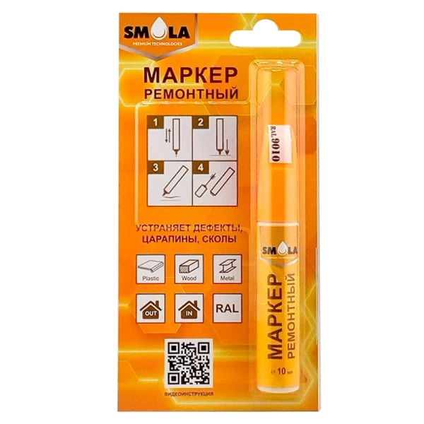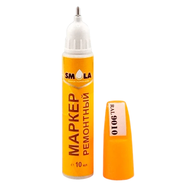 Маркер ремонтный SMOLA RAL 9010 белый цвет предназначен для устранения, ремонта и ретуширования дефектов, царапин, сколов на различных поверхностях методом нанесения быстросохнущей цветной эмали, стойкой к воздействию влаги.