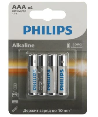 Алкалиновая (щелочная) батарейка типа AAA LR03 / MN 2400 ("мизинчиковая Питает все устройства с высоким энергопотреблением. Долговечные и надежные элементы питания для повседневных устройств, таких как часы и радиоприемники. Базовые щелочные батареи Philips обеспечивают максимальное качество для стандартных задач. Наилучшие характеристики • Щелочная технология отлично подходит для устройств с высоким энергопотреблением • Благодаря наличию разных моделей вы можете использовать эти батарейки для любых нужд • Батарея остается годной для использования в течение 10 лет Удобство использования • Понятные схематические инструкции по эксплуатации Не наносит вреда окружающей среде • Щелочные батареи Philips содержат 0 % кадмия, ртути и свинца Характеристики Питание • Тип элемента питания: Тип AA / щелочная LR6 • Напряжение батареи: 1,5 В Экохарактеристики • Химический состав: Щелочная • Тяжелые металлы: Не содержит кадмия, Не содержит ртути, Не содержит свинца • Упаковочный материал: Картон, ПЭТ • Тип упаковки: Блистер