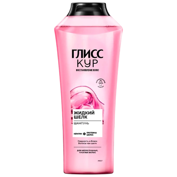 Шампунь Глисс Кур Жидкий Шелк 400мл. Из-за повреждений волосы становятся непослушными и теряют блеск. Чтобы вернуть им гладкость и шелковистость нужен особый уход за волосами. Шампунь для волос ГЛИСС КУР Жидкий Шелк обеспечивает: эффективное очищение, мягкость волос и блеск, волосы как шелк. Продукт содержит 91% ингредиентов натурального происхождения (включая воду).