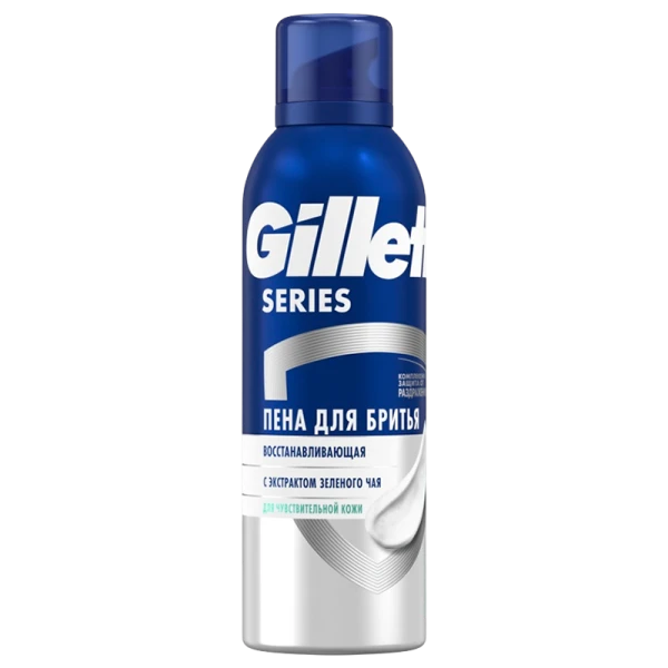 Мужская пена для бритья Gillette Series восстанавливающая бережно воздействует на кожу обеспечивая комфортное бритье. В составе пены Gillette содержится экстракт зеленого чая, который восстанавливает кожу во время бритья. Gillette Series обеспечивает гладкое бритье и дарит ощущение мягкости. Gillette Series легко пенится и смывается под проточной водой. Благодаря воздушной и густой структуре пена способствует легкому скольжению бритвы по коже и защищает кожу во время бритья. Не содержит красителей и спирта. Легкий аромат.
