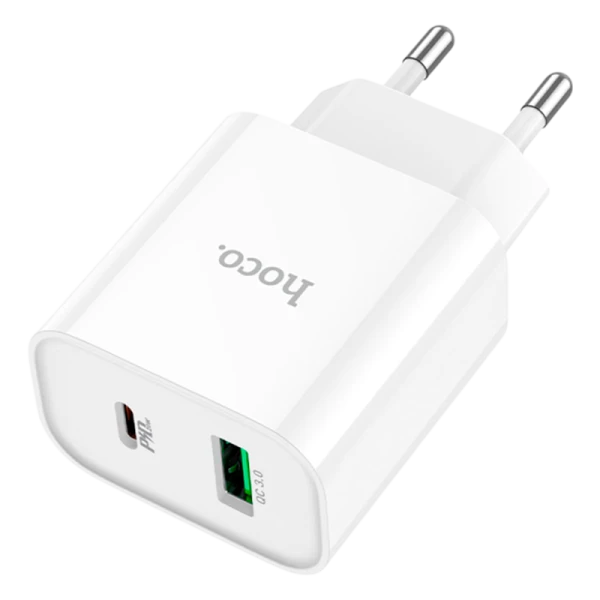 Сетевое З/У HOCO C80A Plus 1USB+1Type-C 3.0A 20W PD,QC белый (1/13/130)