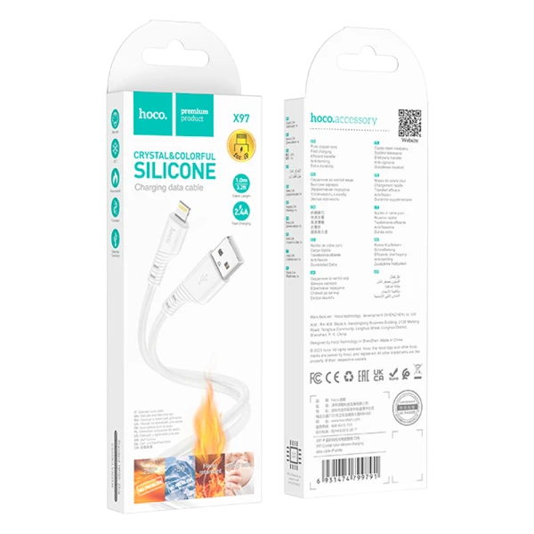 Кабель HOCO X97 USB (m)-Lightning (m) 1м 2.4A силикон белый (1/31/310)