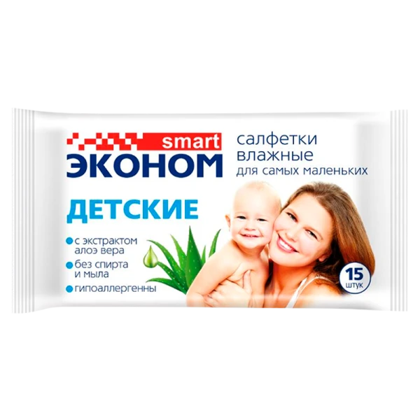 Влажные салфетки Эконом Smart Детские с алоэ вера разработаны специально для нежной кожи малышей. Салфетки бережно очищают, снимают воспаления, увлажняют и питают кожу благодаря содержанию экстракта Алоэ Вера. Гипоаллергенны, не оставляют ощущения липкости на руках, поддерживают естественный уровень pH. Предназначены для ежедневного применения, когда нет возможности тщательно вымыть руки. В школе, на природе, в общественных местах станут настоящим защитником от микробов!