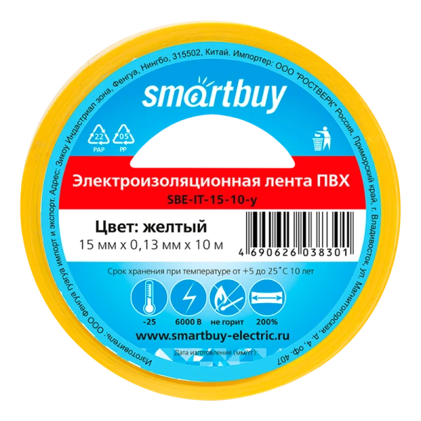 Изолента Smartbuy 15мм*10м ПВХ желтый