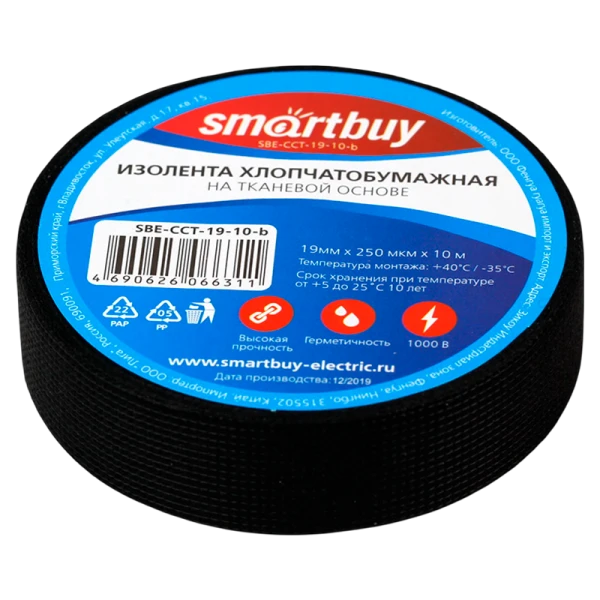 Изолента Smartbuy 19мм*10м ХБ черный