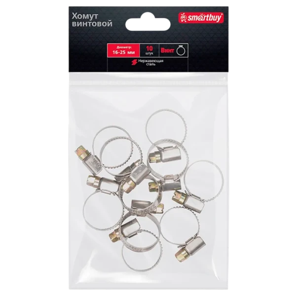 Хомут Smartbuy Винт нержавеющая сталь 10-16мм 10шт.