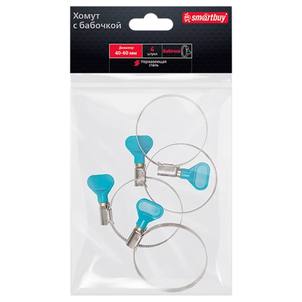 Хомут Smartbuy Бабочка нержавеющая сталь 40-60мм 4шт.