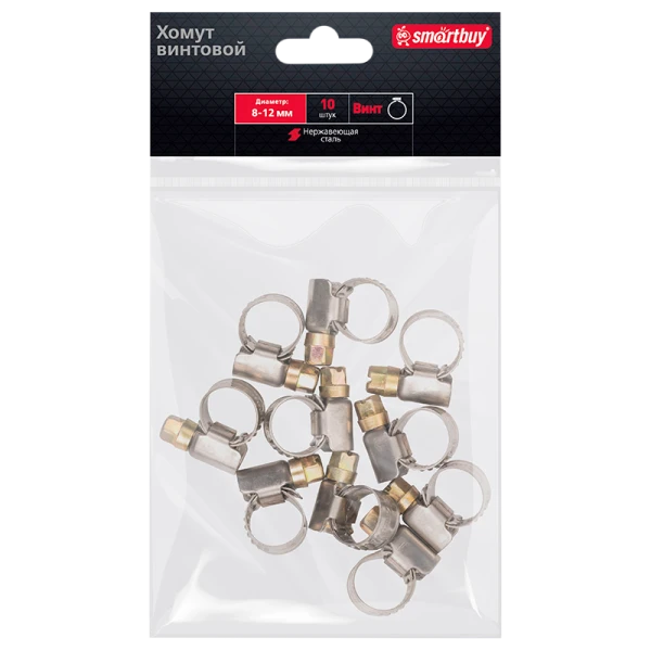 Хомут Smartbuy Винт нержавеющая сталь 8-12мм 10шт.