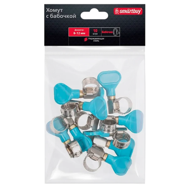 Хомут Smartbuy Бабочка нержавеющая сталь 8-12мм 10шт.