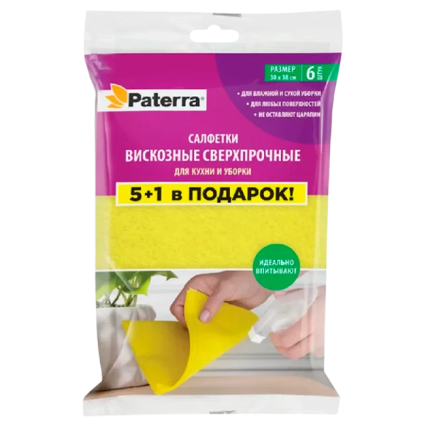 Салфетка Paterra СВЕРХПРОЧНЫЕ 30х38см 6шт. вискоза для кухни и уборки (1/40)