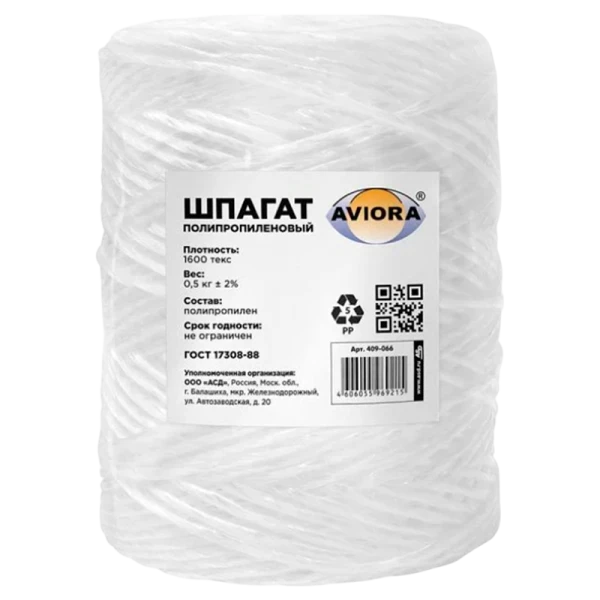 Шпагат AVIORA ПП 1600 текс, бобина 0,5 кг предназначен для связки и упаковки различных материалов, крепления растений к опоре.