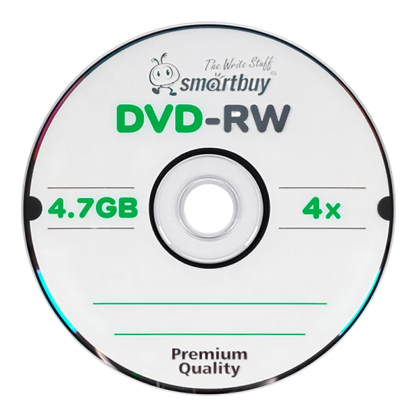 Диски Smartbuy DVD-RW 4.7GB 4x для DVD-плееров, Видео-коллекции, Коллекции игр, Коллекции фотографий, Музыкальной коллекции. Позволяет до 1000 раз перезаписывать информацию. Идеален для записи и долговременного хранения большого объема информации. Cрок службы до 100 лет при соблюдении правил эксплуатации.