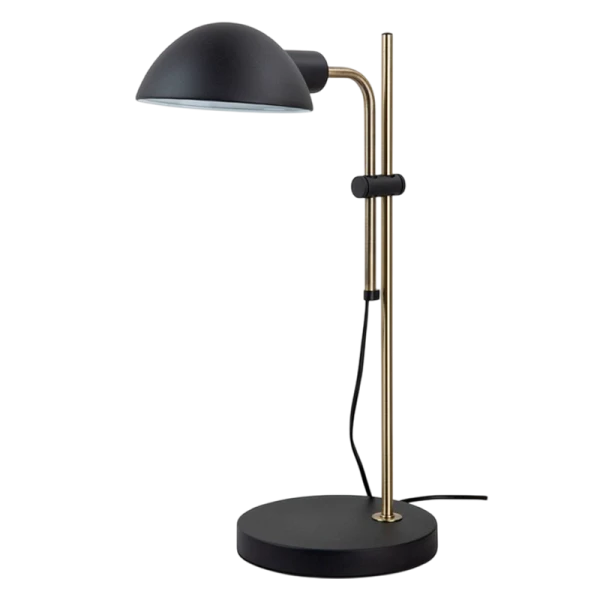 Светильник настольный металлический Camelion KD-430 премиум класса. Светильник послужит украшением любого интерьера. Имеет плафон диаметром 175мм и основание диаметром 200 мм матового черного цвета и стойку с гальваническим покрытием цвета бронзы.