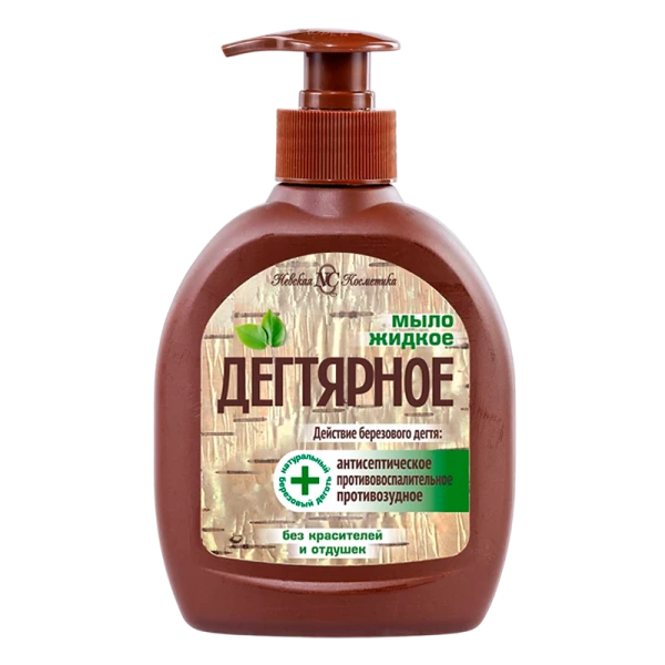 Жидкое мыло для рук Невская косметика с натуральным березовым дегтем подходит для очищения проблемной кожи. Не содержит красителей, отдушек, парабенов, силиконов, не раздражает кожу, клинически протестировано, имеет естественный рН. Можно использовать в качестве геля для душа. Натуральный березовый деготь- природный антисептик, регулирует деятельность сальных желез, устраняет зуд и оказывает противовоспалительное действие.