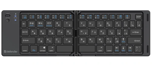 Беспроводная офисная клавиатура с функцией подключения по Bluetooth. Главная особенность модели - компактная складная конструкция, благодаря чему клавиатуру удобно брать в поездки.