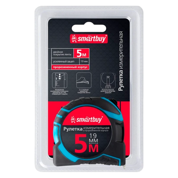 Рулетка измерительная Smartbuy Tools 5м*19мм пластик прорезиненная