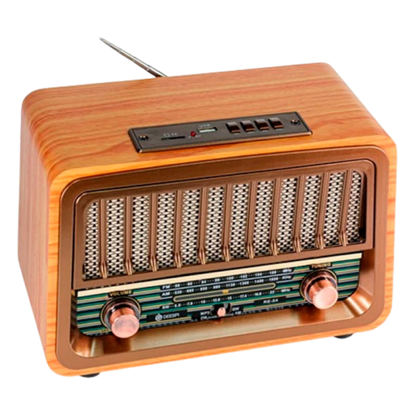 Радиоприемник DEESPI S1213 RE-04 в стиле ретро RE-04: Bluetooth, AM/FM/SW, USB, microSD, MP3 и мощный сабвуфер. Погрузитесь в атмосферу старого доброго радио с новыми технологиями! Deespi RE-04 объединяет винтажный дизайн и широкие возможности: цифровое радио, Bluetooth, воспроизведение музыки с флешек и карт памяти, мощный динамик с сабвуфером для насыщенного звука.