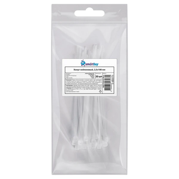 Хомут Smartbuy нейлон, белый - это прочный и надежный продукт, предназначенный для крепления и фиксации различных предметов.