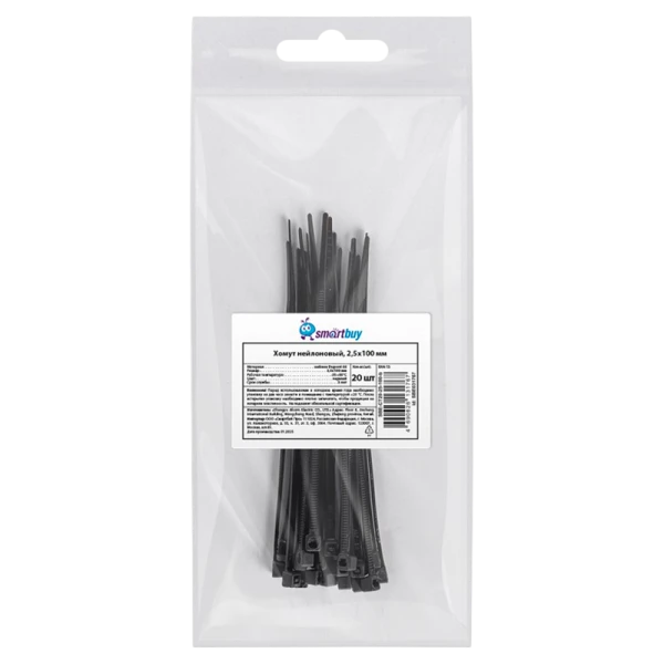 Хомут Smartbuy нейлон, черный - это прочный и надежный продукт, предназначенный для крепления и фиксации различных предметов.