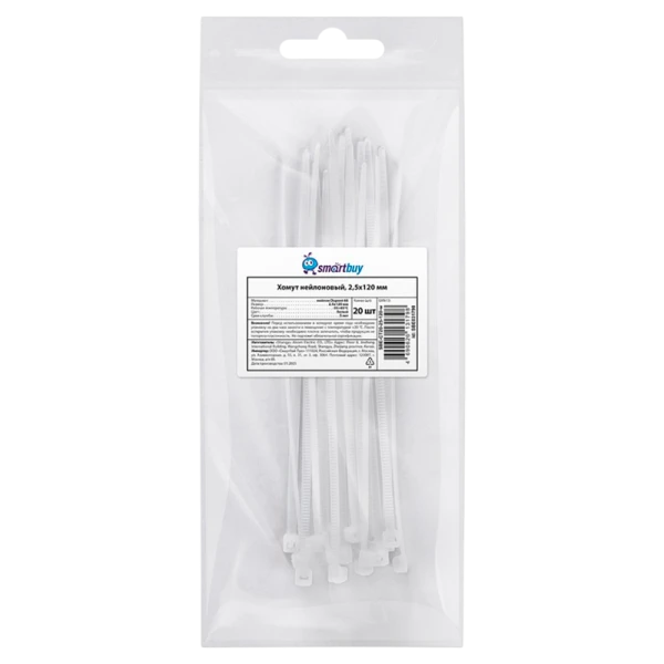 Хомут Smartbuy нейлон, белый - это прочный и надежный продукт, предназначенный для крепления и фиксации различных предметов.