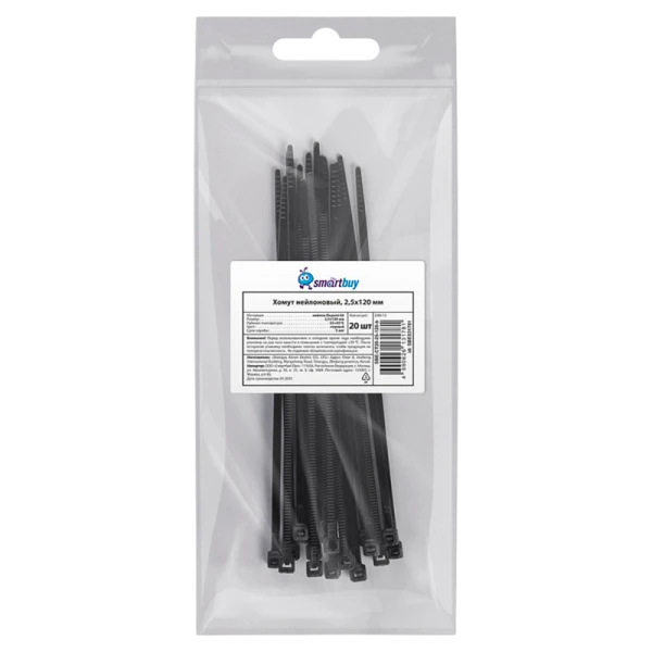 Хомут Smartbuy нейлон, черный - это прочный и надежный продукт, предназначенный для крепления и фиксации различных предметов.