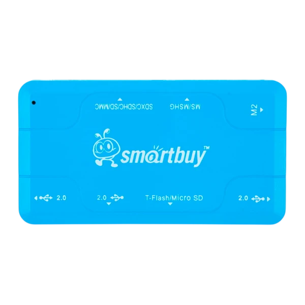 Картридер Smartbuy 750 USB2.0 SD/microSD/MS/M2 Combo с USB хабами голубой