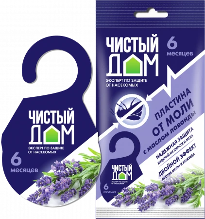 Пластины от моли Чистый дом с маслом лаванды 1шт. на крючке (1/100)