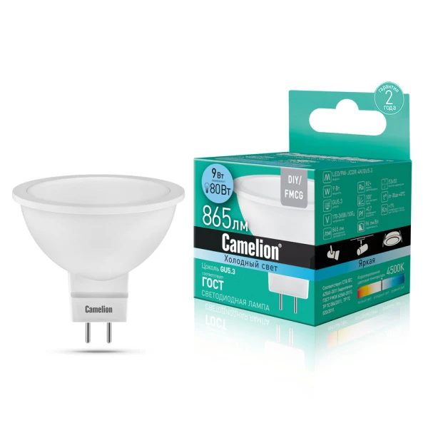 Лампа светодиодная Camelion JCDR GU5.3 9W 4000К 220V софит матовая (1/5/100)