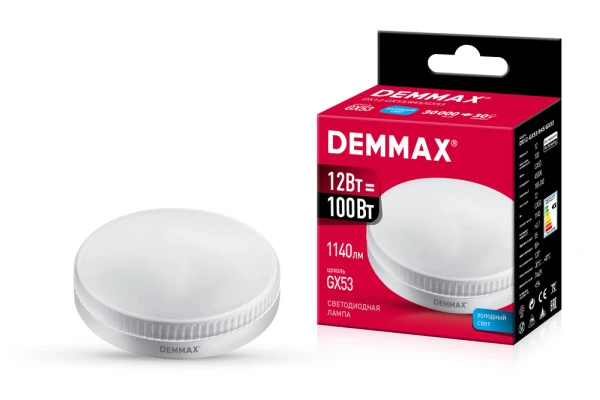 Лампа светодиодная Demmax GX53 12W 4500К 180-240V таблетка (1/10/100)