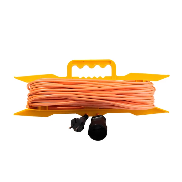 Удлинитель силовой VOLSTEN на рамке без заземления используется для работы на строительных площадках, дачных участках, в мастерских, в гаражах и т.п. Удобен при работе с приборами находящимися удаленно от стационарной розетки, например, газонокосилки, электрические пилы, триммеры, электродрели, лобзики и др. Рамка упрощает смотку и хранение удлинителя. Ручка на рамке позволяет с удобством переносить удлинитель. Фиксация концов удлинителя на рамке в специальных пазах. Яркая оранжевая расцветка провода повышает заметность для предотвращения риска повреждения