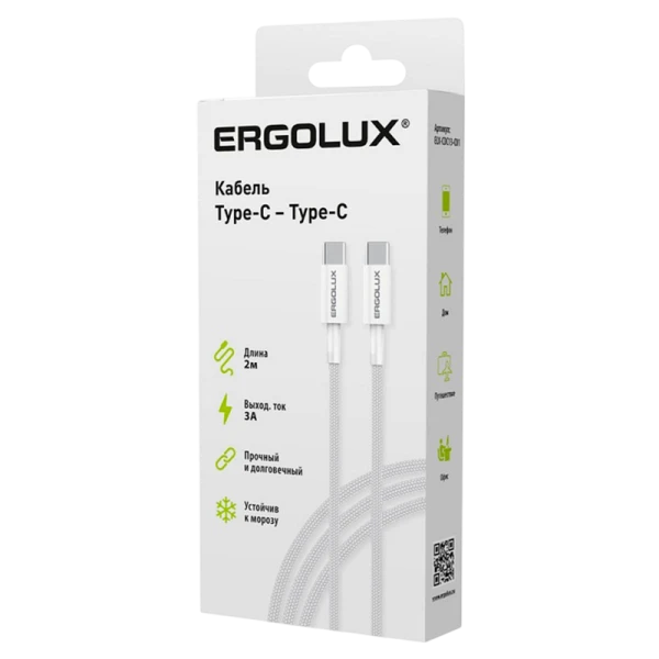 Кабель Ergolux ELX-CDC13 Type-C (m)-Type-C (m) 2м 3.0A белый (1/10/240)