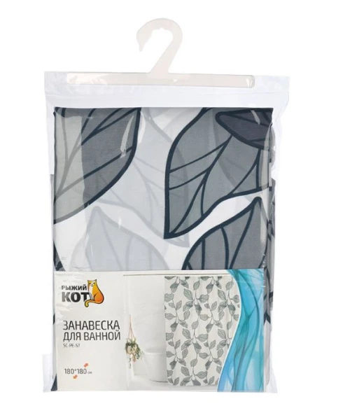 Штора для ванной Рыжий кот SC-PE-57 Ветки с листьями 180х180см (1/12/24)