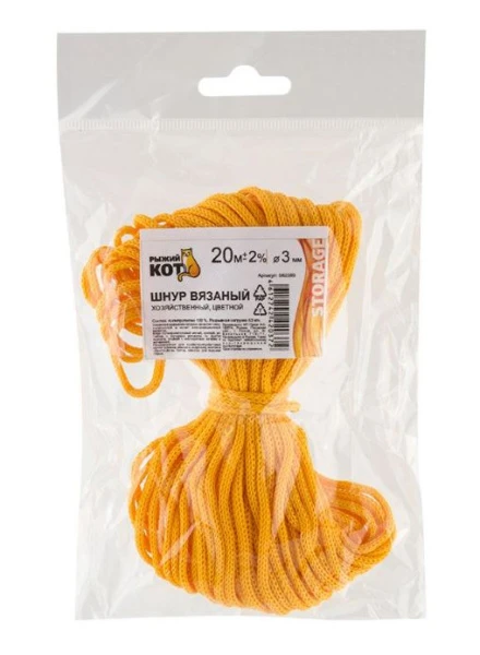 Шнур хозяйственный Рыжий кот 20м вязаный цветной ассорти (1/10/130)