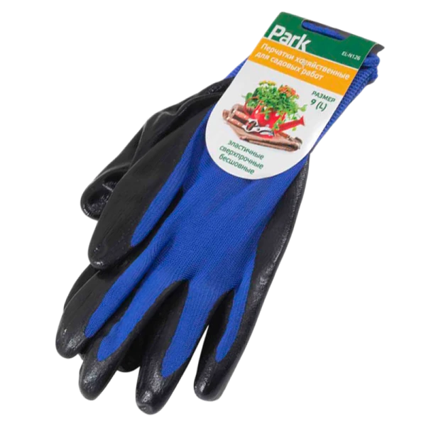 Хозяйственные перчатки с нитриловым покрытием Park EL-N126, размер 9/L, цвет синий/черный, 001058 оптимальны для проведения сельскохозяйственных работ, защищают руки от порезов и проколов.