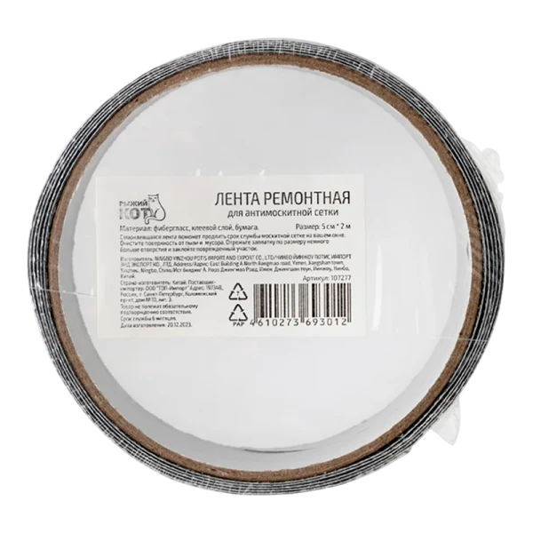 Самоклеящаяся лента-скотч Рыжий кот поможет продлить срок службы москитной сетке на вашем окне. Очистите поверхность от пыли и мусора, отрежьте заплатку по размеру немного больше отверстия и заклейте поврежденный участок. Длина - 2 метра.